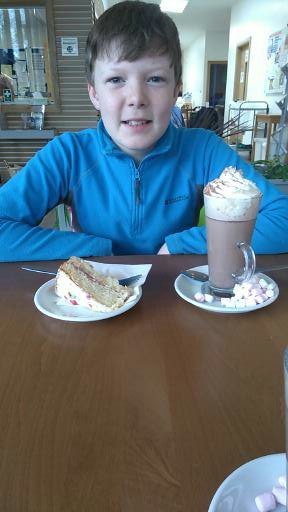 Rewarded with cake and hot chocolate.
