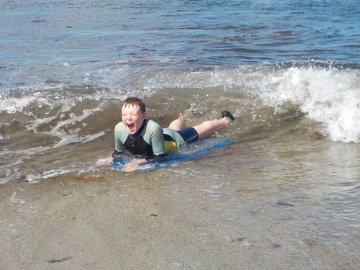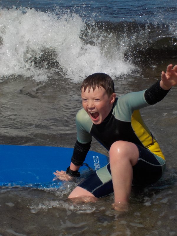 The holiday cottage.Feeding the goatsThey are very hungry.Ready for the waves.Calm sea.but very cold....Wave....Catching the wave.Weeeee......Having a break.Yeah!