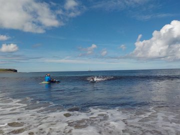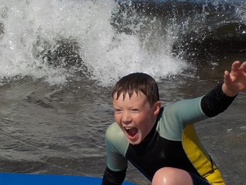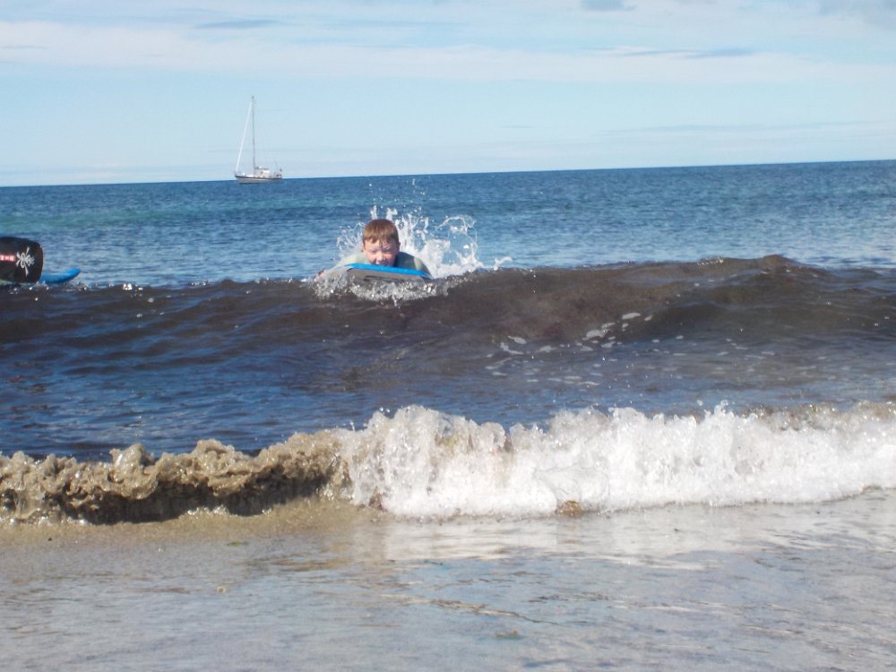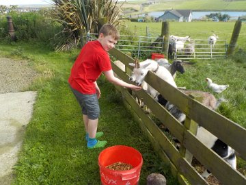 The holiday cottage.Feeding the goatsThey are very hungry.Ready for the waves.Calm sea.but very cold....Wave....Catching the wave.Weeeee......Having a break.Yeah!